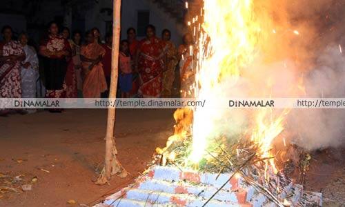 சின்னாளபட்டி;சின்னாளபட்டியில் மூன்றாம்பிறை தரிசனத்துடன் துவங்கிய 132 ஆண்டு பாரம்பரிய காமன் பண்டிகையில், நிறைவாக சிவன் நெற்றிக்கண் திறப்பு நடந்தது. சின்னாளபட்டி கடைவீதியில் உள்ள காமைய(காமன்)சுவாமி கோயில், திருவிழா ஆண்டுதோறும் மாசி மாதம் நடத்தப்படும். பேக்கரும்பு உள்ளிட்ட சிறப்பு பொருட்களால் அலங்கரிக்கப்பட்ட சுவாமிக்கு, 15 நாட்கள் தொடர் பூஜை நடைபெறும். காமன் கதை படித்தல், நெற்றிக்கண் திறப்பு, சுவாமி தகனம் போன்ற முக்கிய நிகழ்ச்சிகள் நடப்பது வழக்கம். இந்தாண்டு விழா, பிப். 28-ல் மூன்றாம்பிறை தரிசனத்துடன் துவங்கியது. பிருந்தாவன தோப்பில், பேக்கரும்பு, மா, ஆமணக்கு, அரசு, அரளி இலைகள், பூக்களால் சுவாமி அலங்கரித்தல் நடந்தது. பிறை தரிசனத்தைத்தொடர்ந்து, ஊர்வலம் நடந்தது. கோயில் பீடத்தில் சுவாமி ஊன்றுதலுடன், 15 நாட்கள் வழிபாடு நடந்தது. நேற்று, விழாவின் முக்கிய நிகழ்ச்சியான நெற்றிக்கண் திறப்பு நடந்தது. இதற்காக, ரதி, மன்மதன் உருவம் வரைந்த அட்டையுடன் அரளிக்குச்சியில் தயாரான வில், அம்பு ஊர்வலம் நடந்தது. கோயில் முன்பு, சிவன் நெற்றிக்கண் திறப்பிற்கான காமன் கதையின் இறுதிப்பகுதி படிக்கப்பட்டது. நெற்றிக்கண் திறப்புடன், காமையசுவாமி தகனம் நடந்தது. இதில், ஏராளமான பெண்கள் உப்பு நேர்த்திக்கடன் செலுத்தி வழிபட்டனர்.