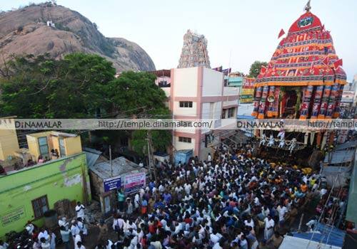 திருப்பரங்குன்றத்தில் பங்குனித் திருவிழா மார்ச் 4ல் துவங்கி சிறப்பாக நடைபெற்றுவருகிறது. விழாவில் மதுரை மீனாட்சி சுந்தரேஸ்வரர் முன்னிலையில், திருப்பரங்குன்றத்தில் சுப்பிரமணிய சுவாமி, தெய்வானை திருக்கல்யாணம் நேற்று கோலாகல நடந்தது. உற்சவர் சுப்பிரமணிய சுவாமி, தெய்வானைக்கு அபிஷேக, ஆராதனைகள் முடிந்து, திருமண அலங்காரத்தில் எழுந்தருளினர். மதுரை மீனாட்சிஅம்மன், சுந்தரேஸ்வரர் திருப்பரங்குன்றம் சந்திப்பு மண்டபத்திற்கு வந்தனர். பின், ஆறுகால் பீடத்தில் திருக்கல்யாண நிகழ்ச்சி நடந்தது.இரவு வெள்ளி யானை வாகனத்தில் சுப்பிரமணிய சுவாமி, பூ பல்லக்கில் தெய்வானை புறப்பாடாகி, 16 கால் மண்டபம் அருகே மீனாட்சி அம்மன், சுந்தரேஸ்வரர் விடைபெறும் நிகழ்ச்சி நடந்தது. இன்று தேரேட்டம் சிறப்பாக நடைபெற்றது. ஆயிரக்கணக்கான பக்தர்கள் வடம் பிடித்து தேரை இழுத்தனர்.