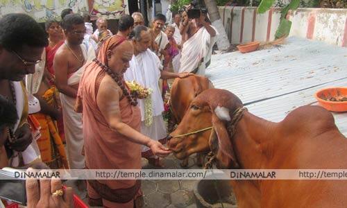 கோபி, சிருங்கேரி சாரதா மடம் சுவாமிகள், கோபியிலுள்ள விஸ்வேஸ்ர சுவாமி கோவிலில் சிறப்பு பூஜை செய்து வழிபாடு நடத்தினார். சிருங்கேரி சாரதா மடம் சுவாமிகள் பாரதி மஹா சன்னிதானம், அவரது சிஷ்யர் விதுசேகர பாரதி சன்னிதானம் சுவாமிகள், ஆன்மிக பயணமாக ஈரோடு மாவட்டம், கோபிக்கு நேற்று முன்தினம் வந்தனர். கோபி கிருஷ்ணன் வீதியில் உள்ள, சாரதா கிருபா இல்லத்தில் சுவாமிகள் அன்றிரவு தங்கினார். நேற்று காலை, 10:30 மணியளவில், அதே வீதியில் உள்ள, நந்தகோகுலத்தில் காத்திருந்த பக்தர்களுக்கு அருளாசி வழங்க சென்றார். கோசாலை நிர்வாகிகள் பூர்ண கும்ப மரியாதையுடன், சுவாமிகளை வரவேற்றனர். ஓரிரு மாடுகளுக்கு பெயர் சூட்டினார். அதன் பின், ஈஸ்வரன் கோவில் வீதியில் உள்ள விசாலாட்சி சமேத விஸ்வேஸ்ர சுவாமி கோவிலில், சுவாமிகள் சிறப்பு பூஜை செய்து வழிபட்டு சென்றனர். சுவாமிகள் வருகையால், கிருஷ்ணன் வீதி, அக்ரஹாரம், ஈஸ்வரன் கோவில் வீதி நேற்று விழா கோலம் பூண்டிருந்தது. இன்று மாலை சுவாமிகள், ஈரோடு புறப்பட்டு செல்கின்றனர்.
