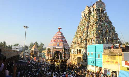 திருச்சி: திருவானைக்காவல் ஜம்புகேஸ்வரர் கோவிலில் பங்குனி திருவிழாவை முன்னிட்டு, தேரோட்டம் நடைபெற்றது.