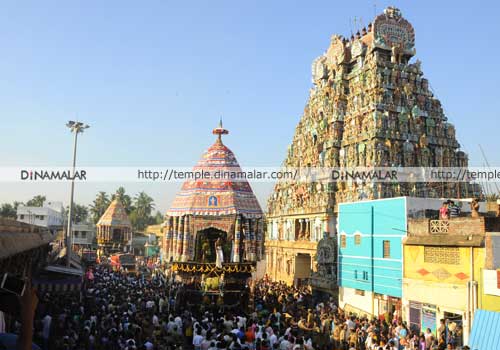 பஞ்சபூத ஸ்தலங்களில் நீர் ஸ்தலமாக, திருச்சி திருவானைக்காவல் ஜம்புகேஸ்வரர் - அகிலாண்டேஸ்வரி கோயில் உள்ளது. இங்கு பங்குனி திருவிழா சிறப்பாக நடைபெற்று வருகிறது. விழாவின் முக்கிய நிகழ்ச்சியான தேரோட்டம் இன்று நடைபெற்றது. சிவசிவ கோஷம் முழங்க பல்லாயிரக்கணக்கான பக்தர்கள் தேரை வடம்பிடிக்க, தேர் முக்கிய வீதியில் வலம்வந்தது.