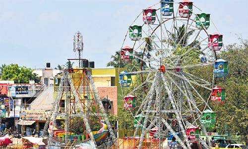 உடுமலை: மாரியம்மன் கோவில் தேர்த்திருவிழாவையொட்டி, குட்டை திடல் மைதானத்தில், விளையாட்டு சாதனங்கள் அமைக்கப்பட்டு, மக்கள் கூட்டத்தால் களை கட்ட துவங்கியுள்ளது. உடுமலை மாரியம்மன் கோவிலில், திருத்தேரோட்டம் பிரசித்தி பெற்றதாகும். நகர மற்றும் சுற்றுப்பகுதி கிராம மக்கள் திருவிழா நோன்பு சாட்டியதும், நாள்தோறும் கோவிலுக்கு வருகின்றனர். இவ்வாறு, வரும் மக்களுக்காக குட்டை திடல் மைதானத்தில், விளையாட்டு சாதனங்கள் அமைக்கப்படுகிறது. வருவாய்த்துறை சார்பில், ஆண்டுதோறும், இதற்காக ஏலம் விடப்படுகிறது. இந்தாண்டு, நோன்பு சாட்டுதலுக்கு முன்பே, மைதானத்தில், பல்வேறு கடைகள், குழந்தைகளுக்கான விளையாட்டு சாதனங்கள் அமைக்கப்பட்டன. நேற்று கோவிலில் தேர்த்திருவிழாவுக்காக நோன்பு சாட்டப்பட்டது. இதையடுத்து, குட்டை திடல் மைதானத்துக்கு வரும் மக்களின் எண்ணிக்கை அதிகரித்துள்ளது. அனைத்து வகையான விளையாட்டு சாதனங்களும் அமைக்கப்பட்ட பின்னர், குட்டை திடல் நாள்தோறும் களைகட்டும். இதே போல், அவ்வீதியில், தற்காலிக கடைகளும் அமைக்கப்பட்டு வருகிறது.