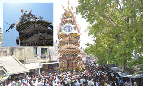 ஓசூர்: பாகலூர், கோட்டை மாரியம்மன் கோவில் தேர்த்திருவிழாவில், இரு மாநில பக்தர்கள் பங்கேற்று சுவாமி தரிசனம் செய்தனர். ஹெலிகாப்டர் மூலம், தேர் மற்றும் கோவில் மீது பூக்கள் தூவப்பட்டன. கிருஷ்ணகிரி மாவட்டம், ஓசூர் அடுத்த பாகலூர் கிராமத்தில், 100 ஆண்டு பழமையான கிராம தேவதை கோட்டை மாரியம்மன் கோவில் உள்ளது. இங்கு, திருவிழா ஆண்டுதோறும் தெலுங்கு வருடப் பிறப்பான, யுகாதியை முன்னிட்டு நடத்தப்படுவது வழக்கம். இந்த ஆண்டுக்கான திருவிழா கடந்த, 29 காலை, 9:30 மணிக்கு, வி?ஷச பூஜையுடன் துவங்கியது. முக்கிய நிகழ்ச்சியான நேற்று காலை, 10:00 மணிக்கு ரத பிரதிஷ்டை, ஹோமம் நடந்தது. மதியம், 12:10 மணிக்கு, அமைச்சர் பாலகிருஷ்ணாரெட்டி தேரை வடம் பிடித்து துவக்கி வைக்க, ஹெலிகாப்டர் மூலம் தேர் மற்றும் கோவில் மீது மூன்று முறை பூக்கள் தூவப்பட்டன. முக்கிய வீதிகளில் வலம் வந்த தேர் மீது, உப்பு, மிளகு, ஆமணக்கு விதை, வாழைப்பழம் ஆகியவற்றை மக்கள் வீசி வழிபட்டனர். தமிழகம், கர்நாடகா என இரு மாநிலத்தை சேர்ந்த, ஆயிரக்கணக்கான பக்தர்கள் சுவாமி தரிசனம் செய்தனர். நேற்று மாலை, தேர் நிலையை அடைந்தவுடன், இரவு, 9:00 மணிக்கு கிராம தேவதை கோட்டை மாரியம்மன் பல்லக்கு, உற்சவம் ஆகிய நிகழ்ச்சிகள் நடந்தன. நாளை (ஏப். 2) நள்ளிரவு, 12:00 மணிக்கு திரவுபதி அம்மன் கரகம் நிகழ்ச்சி நடக்கிறது.