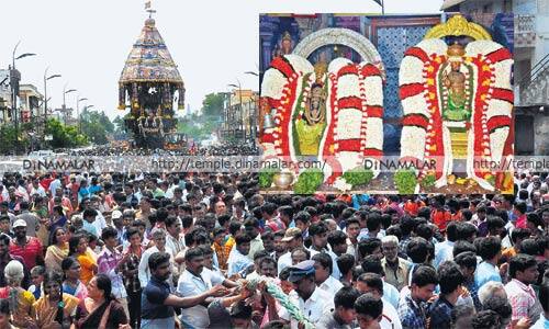 இதையடுத்து, ஏழாம் நாள் முக்கிய உற்சவமான நேற்று, தேர் திருவிழா கோலாகலமாக நடைபெற்றது. காலை, 5:30 மணிக்கு, ஏகாம்பரநாதர், ஏலவார்குழலி தேரில் எழுந்தருளினர். 8:15க்கு, நிலையில் இருந்த புறப்பட்ட தேரை, ஏராளமான பக்தர்கள் வடம் பிடித்து இழுத்து சென்றனர். இந்த விழாவிற்காக வெளி மாவட்டத்தில் இருந்து பங்கேற்ற, 45 சிவன் பக்தர்கள், மங்கள் வாத்தியங்களை இசைத்தபடியும், கோலாட்டம் ஆடியபடியும் தேர்முன் சென்றனர். நான்கு ராஜவீதிகளிலும் பவனி வந்த தேர், மதியம், 1:45க்கு கோவிலை வந்தடைந்தது. இதையடுத்து, இரவு சுவாமிக்கு மகா அபிஷேகம் நடைபெற்றது. இன்று காலை, ஆறுமுகப் பெருமான் எடுப்பு ரத காட்சியில் அருள்பாலிப்பார். இரவு, குதிரை வாகனத்தில் எழுந்தருளும் ஏகாம்பரநாதர், ராஜவீதிகளில் பவனி வருவார்.