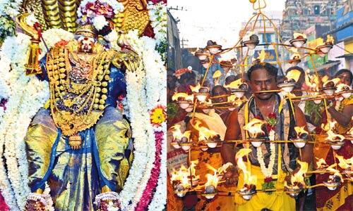 அருப்புக்கோட்டை: அருப்புக்கோட்டை நாடார் உறவின்முறைக்கு பாத்தியப்பட்ட முத்துமாரியம்மன் கோயில் பங்குனி பொங்கல் விழா கடந்த வாரம் கொடியேற்றத்துடன் துவங்கியது. தினமும் அம்மன் சிறப்பு அலங்காரத்தில் பக்தர்களுக்கு அருள் பாலித்தார். எட்டாம் நாள் விழாவாக நேற்று காலை விரதம்இருந்த பெண்கள் கோயிலின் முன்பு பக்தியுடன் பொங்கல் வைத்து அம்மனை வழிபட்டனர். கோயிலை சுற்றி அங்கப் பிரதட்சணம் செய்தனர். இன்று பூக்குழி: இதுபோல் நேற்று காலை மற்றும் மாலையில் பக்தர்கள் 51, 101 சட்டிகளுடன் அக்னி சட்டிகள் எடுத்து ஊர்லவலமாக வந்து நேர்த்தி கடன் செலுத்தினர். இன்று அதிகாலையில் பக்தர்கள் பூக்குழி இறங்குதல் நடக்கிறது.