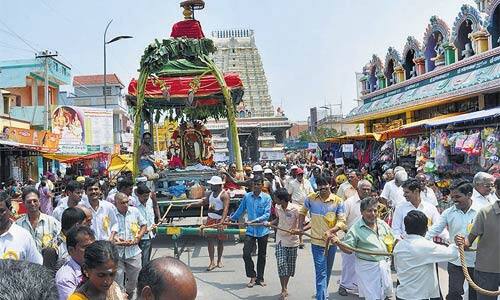 காஞ்சிபுரம்: காஞ்சிபுரம் ஏகாம்பரநாதர் கோவில் பங்குனி உத்திர திருவிழாவில், நேற்று காலை வள்ளி, தெய்வானையுடன் ஆறுமுகப்பெருமான் வீதியுலா நடைபெற்றது. காஞ்சிபுரம் ஏகாம்பரநாதர் கோவில் பங்குனி உத்திர திருவிழா கடந்த வியாழக்கிழமை துவங்கி, தினமும் சுவாமி வீதிவுலா சிறப்பாக நடந்து வருகிறது. நேற்று காலை, 11:00 மணிக்கு வள்ளி, தெய்வானையுடன் ஆறு முகப்பெருமான் வீதிஉலா நடைபெற்றது. மாலை, 6:00 மணிக்கு, பிச்சாடனர் கோலத்தில் ஏகாம்பரநாதர் வீதியுலா நடைபெற்றது. இரவு மின் விளக்குகளால் அலங்கரிக்கப்பட்ட குதிரை வாகனத்தில் ஏகாம்பரநாதர் எழுந்தருளி வீதியுலா சென்று பக்தர்களுக்கு அருள்பாலித்தார். இன்று காலை, ஆள் மேல் பல்லக்கில் சுவாமி ஊர்வலமாக செல்வார். இரவு வெள்ளி மாவடி சேவை தல மகிமை விசேஷ காட்சியுடன் சுவாமி ஊர்வலம் நடை பெறும்.
