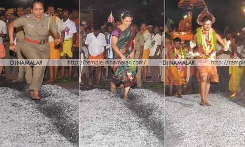 தொழிலாளர் நலத்துறை ஆணையர் அமுதா, முன்னாள் எம்.பி., காளியப்பன் மற்றும் குழந்தைகளுடன் பல பெண்கள், மாற்றுத் திறனாளிகள், போலீஸ்காரர்கள், வனத்துறையினர், தீயணைப்பு பிரிவினர் என பலரும், குண்டம் இறங்கினர்.அறநிலைய துறை ஆணையர் வீரசண்முகமணி, கலெக்டர் பிரபாகர், எஸ்.பி., சிவகுமார் உட்பட பலர் பங்கேற்றனர்.
