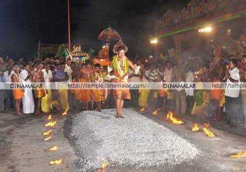 மருத்துவ வசதி : இவர்களுக்கு தேவையான உணவு, தண்ணீர், மருத்துவ வசதிகள் செய்யப்பட்டிருந்தன. நேற்று முன் தினம் இரவு, 11:00 மணிக்கு மேல் சிறப்பு பூஜைகள் துவங்கின. நேற்று அதிகாலை, 2:30 மணிக்கு திருக்குளம் சென்று அம்மன் அழைத்தலும், வரம் பெறுதலும் நடந்தது.