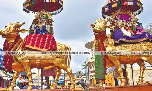 ராமேஸ்வரம்: தமிழ் புத்தாண்டு தினத்தில் ராமேஸ்வரம் அக்னி தீர்த்த கடற்கரையில், தங்க ரிஷப வாகனத்தில் ராமநாதசுவாமி, பர்வதவர்த்தினி அம்மன் எழுந்தருளினர். தமிழ் புத்தாண்டு தினத்தில், ராமேஸ்வரம் ராமநாதசுவாமி கோயிலில் இருந்து சுவாமி, அம்மன் ரிஷப வாகனத்தில் புறப்பாடாகி, அக்னி தீர்த்த கடற்கரையில் எழுந்தருளினர். பின் சுவாமி, அம்மனுக்கு மகா தீபாரதனை செய்ததும், பக்தருக்கு தீர்த்தம் வாரி கொடுக்கும் நிகழ்ச்சி நடந்தது. அங்கு கூடியிருந்த பக்தர்கள் சிவ சிவ என கோஷமிட்டு, அக்னி தீர்த்த கடலில் புனித நீராடினார்கள். ஏராளமான பக்தர்கள் நேற்று ராமேஸ்வரம் கோயிலுக்கு வந்ததால், 22 புனித தீர்த்தங்களில் நீண்ட வரிசையில் காத்திருந்து நீராடினர். கோயிலில் சுவாமி, அம்மன் சன்னதியில் நடந்த சிறப்பு பூஜையில் பக்தர்கள் பங்கேற்று தரிசனம் செய்தனர். மதியம் 12 மணிக்கு கோயில் குருக்கள் உதயகுமார் பஞ்சாங்கம் வாசித்தார். கோயில் இணை ஆணையர் செல்வராஜ், உதவி கோட்ட பொறியாளர் மயில்வாகணன், உதவி ஆணையர் பாலகிருஷ்ணன் பலர் பங்கேற்றனர்.