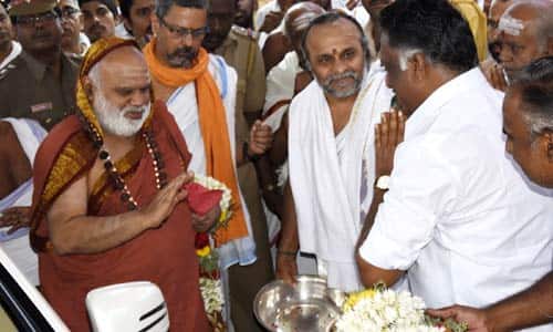 பெரியகுளத்தில் பாரதீ தீர்த்த சுவாமிகளிடம் ஆசி பெற்ற ஓ.பி.எஸ்.,