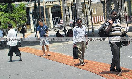 காஞ்சிபுரம்;காஞ்சிபுரம், வரதராஜப்பெருமாள் கோவிலிலுக்கு வரும் பக்தர்களின் பாதங்களை, வெயிலின் தாக்கத்தில்இருந்து காக்க, தரைவிரிப்பு போடப்பட்டு உள்ளது. காஞ்சிபுரம் வரதராஜ பெருமாள் கோவில், 108 திவ்ய தேசங்களின் ஒன்று. 22 ஏக்கர் பரப்புள்ள இக்கோவிலின், இரு ராஜகோபுரங்களும், சிறிய சோழனால், கி.பி., 1018 - 1054ல் கட்டப்பட்டதாக கூறப்படுகிறது. இக்கோவிலுக்கு தமிழகம் மட்டுமல்லாது இந்தியாவின் பல இடங்களில் இருந்தும், வெளிநாட்டில் இருந்தும், தினமும் ஆயிரக்கணக்கான பக்தர்கள் வந்து செல்கின்றனர்.தற்போது, காஞ்சிபுரத்தில் நிலவும் வெயில் காரணமாக, கோவில் பிரகாரத்தில் உள்ள கல் தரையில், சூரியனின் வெப்பம், நடந்து செல்லும் பக்தர்களின் பாதங்களை, பதம் பார்த்து விடுகிறது. இதனால், பக்தர்கள் பெரும் அவதிப்பட்டனர். பக்தர்களின் வசதிக்காக, கோவில் நிர்வாகம் சார்பில், தரைவிரிப்பு (மேட்) அமைக்கப் பட்டுள்ளது. மேலும், பங்குனி உத்திர திருவிழா மற்றும் உடையவர் சாற்றுமறை உற்சவத்திற்காக நிழல் தரும் பந்தல் அமைக்கப்பட்டுள்ளது. இதனால், கோவிலுக்கு வரும் பக்தர்களின் பாதங்களுக்கு இதமாக இருப்பதோடு, பந்தலில் அமர்ந்து ஓய்வெடுத்த பின் செல்கின்றனர்.
