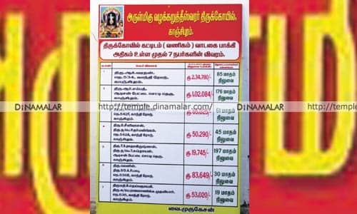 காஞ்சிபுரம்: காஞ்சிபுரம் வழக்கறுத்தீஸ்வரர் கோவிலுக்கு சொந்தமான கட்டடத்திற்கு, வணிகம் தொடர்பான வாடகை பாக்கி வைத்துள்ள, முதல், ஏழு நபர்களின் விபர பட்டியல், கோவில் வளாகத்தில் வைக்கப்பட்டுஉள்ளது.
