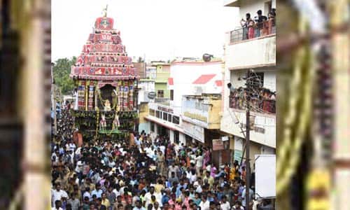 மாலை 5 மணிக்கு கோயில் நிர்வாக அலுவலர் செந்தில்குமார், வடம் பிடித்து தேரோட்டத்தை துவக்கி வைத்தார்.கோயில் திருப்பணிக்குழு தலைவர் விரியன் சுவாமி, தொழில் முதலீட்டாளர் துர்கா.வஜ்ரவேல், நகராட்சி முன்னாள் தலைவர் சுரேஷ், மாவட்ட தி.மு.க., அவைத்தலைவர் மனோகரன், கண்ணம்மாள் கார்டன். ராஜேந்திரன், வர்த்தக சங்க தலைவர் சிவகாமிநாதன், கலாபாண்டியன் பாலிடெக்னிக் கல்லுாரி தலைவர் பால்பாண்டி, மாவட்ட தி.மு.க., விவசாய அணி செயலாளர் மயில்வாகனன், கலைமகள் ஏஜன்ஸி பங்குதாரர் காமராஜ், சிவசக்தி ஏஜன்ஸி உரிமையாளர் பழனிச்சாமி, எழுத்தாளர் மனோகரன், ஜி.ஆர்.டி.டிரஸ்ட் ஆலோசகர் சேதுராமன், விஷ்வாஸ் ஆட்டோ பைனான்ஸ் உரிமையாளர் கலையரசன், இந்தியன் வங்கி நகை மதிப்பீட்டாளர் அண்ணாமலை, ஸ்ரீ ராம விலாஸ் ஜூவல்லரி பங்குதாரர் மணிகண்டன், விக்னேஷ் கல்வி மைய நிர்வாகி சந்தன முத்தையா, சூர்யா ஏஜன்ஸி உரிமையாளர் அழகுவேல், ஆனந்தம் பர்னிச்சர்ஸ் உரிமையாளர்கள் மாரிச்சாமி, மனோ உள்ளிட்ட ஏராளமான பக்தர்கள் வடம் பிடித்து இழுத்தனர். முக்கிய பகுதிகள் வழியாக வந்து கண்ணாடி கடை முக்கில் நிறுத்தப்பட்டு தேர் இன்று மாலை நிலை வந்தடையும்.