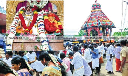 சரவண கணேசன், கவுரவ கண்காணிப்பாளர் சுந்தர்ராஜன் மற்றும் கிராமத்தினர் செய்திருந்தனர். இரவில் கலை நிகழ்ச்சிகள் நடந்தது. அரசு போக்குவரத்து சார்பில் சிறப்பு பஸ்கள் இயக்கப்பட்டன. இன்று காலை 11:00 மணிக்கு தீர்த்தவாரி நடைபெறும். பரமக்குடி: பரமக்குடியில் சித்திரைத் பிரம்மோற்சவ விழாவையொட்டி ஈஸ்வரன் மற்றும் மீனாட்சி அம்மன் கோயில்களில் சித்திரைத் தேரோட்டம் பக்தர்களின் ஹர ஹர, சிவ சிவ கோஷம் முழங்க நடந்தது.
