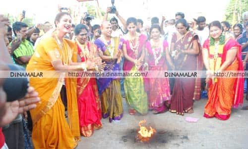 உளுந்துார்பேட்டை: கூவாகம் கூத்தாண்டவர் கோவில் சித்திரை விழாவில், திருநங்கைகளுக்கு பூசாரி தாலி கட்டும் வைபவம் நடந்தது. விழுப்புரம் மாவட்டம், உளுந்துார்பேட்டை அடுத்த கூவாகம் கூத்தாண்டவர் கோவிலில் சித்திரை பெருவிழா கடந்த 25ம் தேதி துவங்கியது. நேற்று முன்தினம் சுவாமிக்கு திருக்கண் திறக்கப்பட்டது. நேற்று மாலை 3.30 மணிக்கு, திருநங்கைகள் பூசாரி கையால் தாலி கட்டிக் கொள்ளும் வைபவம் நடந்தது. இதில், பல்வேறு மாநிலங்களில் இருந்து வந்திருந்த ஆயிரக்கணக்கான திருநங்கைகள் பங்கேற்றனர். மாலை துவங்கிய தாலி கட்டும் நிகழ்ச்சி, இரவு வரை நீடித்தது. மும்பை, சென்னை, டில்லி, கொல்கத்தா, கர்நாடகா, கேரளா மற்றும் மலேசியா உள்ளிட்ட வெளிநாடுகளில் இருந்து வந்திருந்த திருநங்கைகள், பூசாரியின் கைகளால் தாலி கட்டிக்கொண்டு, இரவு முழுவதும் கும்மியடித்து ஆடிப்பாடினர். சுகாதாரத் துறை சார்பில், திருநங்கைகளுக்கான விழிப்புணர்வு நிகழ்ச்சி நடந்தது.