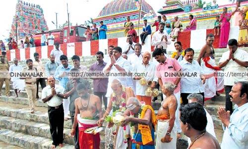 வில்லியனுார்: வில்லியனுார் திருக்காமீஸ்வரர் கோவிலில் திருக்குளம் மற்றும் நீராழி மண்டப கும்பாபிஷேக விழா நடந்தது. வில்லியனுார் கோகிலாம்பிகை சமேத திருக்காமீஸ்வரர் கோவிலில் பழமையான இருதாப நாசினி திருக்குளம், அதன் மையப்பகுதியில் உள்ள நீராழி மண்டபம், தற்போது புதுப்பிக்கப் பட்டுள்ளது. கோவிலில் அமைக்கப்பட்டுள்ள புதிய குளம் மற்றும் நீராழி மண்டப கும்பாபிஷேக விழா, நேற்று முன் தினம் காலை 5:00 மணியளவில் கணபதி பூஜை, முதற்கால யாக பூஜையுடன் துவங்கியது. நேற்று காலை 5:00 மணியளவில் மகா பூர்ணாஹூதி, 6:30 மணியளவில் இரண்டாம் யாக பூஜை, ௭:10 மணிக்கு திருக்குளம் மற்றும் நீராழி மண்டபத்திற்கு கோவில் தலைமை குருக்கள் பாலசுப்புரமணிய சிவாச்சாரியார் தலைமையில் மகா கும்பாபிஷேகம் நடந்தது. விழாவில் பொதுப்பணித் துறை அமைச்சர் நமச்சிவாயம், இந்து சமய அறநிலையத் துறை ஆணையர் தில்லைவேல், பொதுப்பணித் துறை கோவில் புனரமைப்பு திட்ட தலைமைப் செயற்பொறியாளர் சத்தியமூர்த்தி, இளநிலைப் பொறியாளர் செல்வராசு, கோவில் சிறப்பு அதிகாரி திருவரசன் மற்றும் திரளான பக்தர்கள் கலந்து கொண்டனர். மேற்கு பகுதி எஸ்.பி., தெய்வசிகாமணி தலைமையில், இன்ஸ்பெக்டர்கள் ஆறுமுகம், ராஜசேகரவல்லட், சப் இன்ஸ்பெக்டர்கள் வேலையன், ரமேஷ்பாபு, கலியபெருமாள் ஆகியோர் தலைமையில் போலீசார் பாதுகாப்பு பணியில் ஈடுபட்டனர்.