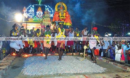 திருத்தணி, ஆர்.கே.பேட்டை சுற்றுப்பகுதி கிராமங்களில், திரவுபதியம்மன் மற்றும் மாத்தம்மன் கோவில்களில், நேற்று, தீமிதி திருவிழா வெகு விமரிசையாக நடந்தது. ஒரே நாளில், 10 இடங்களில் நடந்த தீமிதி திருவிழாவால், பக்தர்களின் இடையே கொண்டாட்டம் கரை புண்டது. ஆர்.கே.பேட்டை ஒன்றியம், ராஜாநகரம், வங்கனுார், வீரகோவில் மோட்டூர், விளக்கணாம்பூடி புதுார் ஆகிய இடங்களில் உள்ள திரவுபதியம்மன் கோவில்களில், இரண்டு வாரங்களாக, தீமிதி திருவிழா நடந்து வருகிறது. இவ்விழாவில், நேற்று, உச்சகட்ட போர் நடத்தப்பட்டது. 18ம் நாள் போர்க்களம் நிகழ்வான துரியோதனன் படுகளம், காலை, 10:30 மணிக்கு, கோவில் வளாகத்தில் நடத்தப்பட்டது. ஒரே நாளில், ஆறு கோவில்களில், துரியோதனன் மற்றும் பீமசேனன் வேடம் அணிந்த தெருக்கூத்து கலைஞர்கள், படுகளம் நிகழ்ச்சியை நடத்தினர். மாலை 6:00 மணிக்கு, திரவுபதியம்மனுடன் காப்பு கட்டி விரதம் மேற்கொண்டிருந்த பக்தர்கள், அக்னி குண்டத்தில் இறங்கி தங்களின் நேர்த்திக்கடனை நிறைவேற்றினர்.