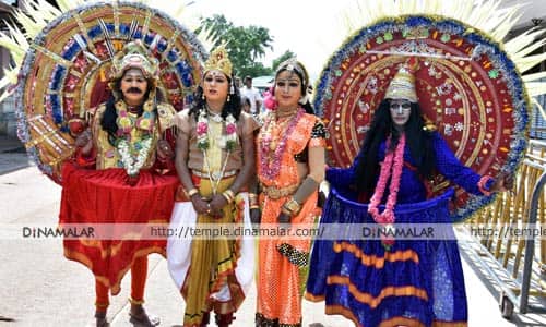 பழநி: கேரள மாநில பக்தர்கள் பாரம்பரிய வேடமணிந்து, பழநி மலைக்கோயிலில் நேர்த்திக்கடன் செலுத்தினர். கோடை விடுமுறையை முன்னிட்டு, பழநி முருகன் கோயிலுக்கு கேரளா, ஆந்திரா போன்ற வெளி மாநில, மாவட்ட பக்தர்கள் வருகை அதிகரித்துள்ளது.குறிப்பாக கேரள மாநில பக்தர்கள் அதிகளவில் வந்து செல்கின்றனர். நேற்று ஆலப்புழாவை சேர்ந்த பக்தர்கள் அலகு குத்தியும், மயில் காவடிகள் எடுத்தும், ராஜா, முருகன், தெய்வானை, காளி வேடமணிந்தும் மலைக்கோயில் வெளிப்பிரகாரத்தில், பாரம்பரிய கலாசாரத்தை வெளிப்படுத்தும் வகையில் நடனம் ஆடியும் நேர்த்திக்கடன் செலுத்தினர். திரளான பக்தர்கள் கண்டு களித்தனர்.