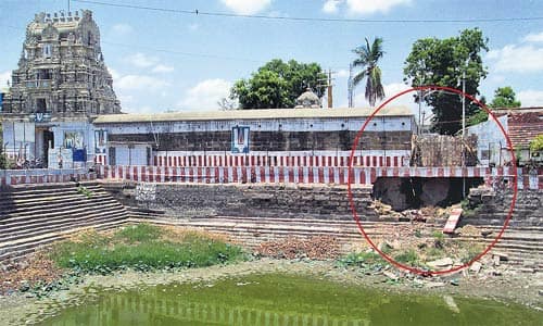 காஞ்சிபுரம் : காஞ்சிபுரம், அஷ்டபுஜ பெருமாள் கோவிலில், வர்தா புயலின் போது, இடிந்து விழுந்த கோவில் குளத்தின், சுற்றுச்சுவரை சீரமைக்க, அதிகாரிகள் நடவடிக்கை எடுக்க வேண்டும் என, பக்தர்கள் எதிர்பார்க்கின்றனர். பழமையான வைணவ கோவில்களில் ஒன்றாகவும், பெருமாளின் மங்களாசாசனம் பெற்ற காஞ்சிபுரம் அஷ்டபுஜ பெருமாள் கோவில். 108 திவ்ய தேசங்களில், 45வது திவ்ய தேசமாக விளங்குகிறது. 108 திருப்பதிகளில், இங்கு மட்டும் தான் பெருமாள், எட்டு திருக்கரங்களுடன் பக்தர்களுக்கு அருள் பாலிக்கிறார். காஞ்சிக்கு சுற்றுலா வரும், பயணியர், இக்கோவிலுக்கு வந்து சுவாமி தரிசனம் செய்கின்றனர். காஞ்சிபுரத்தில், கடந்த ஆண்டு டிசம்பர், 12ல், வர்தா புயலின் போது, பெய்த கனமழைக்கு, இக்கோவில் அருகே உள்ள, கஜேந்திர புஷ்கரணி தீர்த்தம் என அழைக்கப்படும், குளத்தின் தெற்கு பகுதியில், சுற்றுச்சுவரின், ஒரு பகுதி இடிந்தது. இந்த சுற்றுச்சுவர் இடிந்து, ஐந்த மாதங்களாகியும், சீரமைக்க அதிகாரிகள் எந்தவித நடவடிக்கையும் எடுக்கவில்லை என, கோவிலுக்கு வரும் பக்தர்கள் கவலையுடன் தெரிவிக்கின்றனர்.