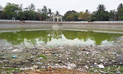 இயற்கை நீரூற்று மணற்பரப்பில் அமைந்த குளம், 25 ஆண்டுகளுக்கு முன், வற்றாமல் நீர் நிரம்பியிருக்கும். நாளடைவில், குளத்தைச் சுற்றிலும் கட்டடங்கள் உருவாகி, இதன் நீர்வரத்து பாதைகள் அடைபட்டு, குளத்தின் நீர்வரத்து தடைபட்டும், குளம் துார்ந்தும், சேற்று சகதியுமாகவும் சீரழிகிறது. மழைக்காலத்தில் தேங்கும் நீர், சில மாதங்களில் வறண்டு விடுகிறது. குளத்தில் படர்ந்த கொடிகள், வறட்சியின் போது மக்கி, மீன்கள் இறந்து துர்நாற்றமடிக்கிறது. குளத்தில், பிளாஸ்டிக் உள்ளிட்ட குப்பையும் குவிக்கப்படுகிறது. இது ஒருபுறமிருக்க, குளத்தில் அமைக்கப்பட்ட பழங்கால படிகளும், சரிந்து ஆபத்தாக உள்ளது. புனித தீர்த்த குள அவலத்தால் அதிருப்தியடைந்துள்ள பக்தர்கள், குளத்தை துார் வாரவும், படிகளை புதுப்பித்து மேம்படுத்தவும், கோவில் நிர்வாகத்தை வலியுறுத்துகின்றனர்.