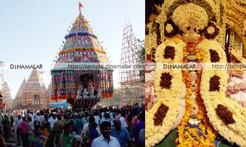 காரைக்கால்: திருநள்ளார் சனீஸ்வர பகவான் கோவில் பிரம்மோற்சவ விழாவில், நேற்று நடந்த தேரோட்டத்தில் ஏராளமான பக்தர்கள் வடம் பிடித்தனர். காரைக்கால் திருநள்ளாரில் பிரசித்தி பெற்ற தர்பாரண்யேஸ்வரர் கோவிலில், சனீஸ்வர பகவான் தனி சன்னிதியில் அருள்பாலித்து வருகிறார். இக்கோவிலில் பிரம்மோற்சவ விழா, 21ல் கொடியேற்றத்துடன் துவங்கியது. முக்கிய நிகழ்வாக, நேற்று தேரோட்டம் நடந்தது. இதில், செண்பக தியாகராஜர், நிலோத்தம்பாள், விநாயகர், முருகர், சண்டி கேஸ்வரர் ஆகிய சுவாமிகள் ஐந்து தேர்களில் எழுந்தருளி, பவனி வந்தனர்.