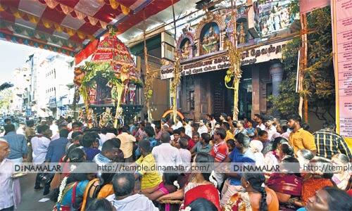 சென்னை: சென்னை காளிகாம்பாள் கோவிலில், வைகாசி பிரம்மோற்சவத்தின் பிரதான நாளான நேற்று, தேர் திருவிழா வெகு விமரிசையாக நடந்தது. இதில், ஏராளமான பக்தர்கள் பங்கேற்று, ‘ஓம் சக்தி’ கோஷத்துடன் வடம் பிடித்தனர். சென்னை, தம்புசெட்டி தெருவில் அமைந்துள்ளது, காளிகாம்பாள் உடனுறை கமடேசுவரர் கோவில். பிரசித்தி பெற்ற இக்கோவிலில், மராட்டிய மன்னர் சத்ரபதி சிவாஜி, பாரதியார் உள்ளிட்டோர் வழிபாடு செய்தனர். முற்காலத்தில், உக்கிரகாளியாக காட்சியளித்த இக்கோவிலின் உற்சவர் காளிகாம்பாள், தற்போது சாந்த சொரூப காமாட்சி அவதாரமாக காட்சியளிப்பதாக ஐதீக நம்பிக்கை நிலவுகிறது.