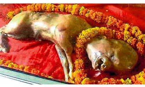 இதுகுறித்து அப்பகுதி மக்கள் கூறுகையில், இந்துக்கள் புனிதமாக கருதும் பசுவின் வயிற்றில் இருந்து, மகா விஷ்ணு அவதரித்துள்ளார். எனவே, நாங்கள் வழிபடுகிறோம் என்றனர். இது குறித்து, கால்நடை மருத்துவர் அஜய் கூறுகையில், கன்று கருவில் இருந்த போது, பல்வேறு காரணங்களால் வளர்ச்சி அடையவில்லை. இதனால், மனித உருவம் போன்று தோன்றுகிறது. இதை கடவுளின் அவதாரம் எனக்கூறுவது, மூடநம்பிக்கையே, என்றார். மனித உருவம் கொண்ட அந்த கன்றுவின் உடலை எரித்து, அதன் மீது கோவில் கட்ட, அந்த கிராம மக்கள் முடிவு செய்துள்ளனர்.