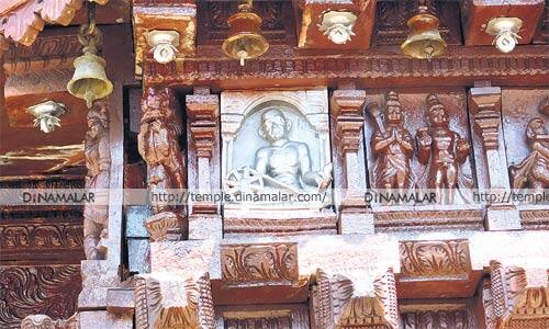 திருவாடானையில் பிரசித்தி பெற்ற ஆதிரெத்தினேஸ்வரர் கோயில் உள்ளது. இக் கோயிலுக்கு சொந்தமான தேரில், 200க்கும் மேற்பட்ட சிற்பங்கள் வடிவமைக்கப்பட்டுள்ளன. அழகிய வேலைபாடுடன் இச் சிலைகள் அமைந்துள்ளது.தேரின் மேல்பகுதியில் சுவாமிக்கு சிலைக்கு கீழ் பகுதியில் மகாத்மாகாந்தி ராட்டினத்தில் நுால் நுாற்கும் வடிவம் அமைக்கப்பட்டுள்ளது. இந்திய சுதந்திர போராட்ட வரலாற்றில் திருவாடானை முக்கிய பங்கு வகித்துள்ளது. தமிழகத்தில் தியாகிகள் அதிகமாக வாழும் ஊர்களில் திருவாடானையும் ஒன்று. ஆகவே ஆன்மிகத்தில் அதிக ஆர்வம் கொண்ட இப்பகுதி மக்கள், சுதந்திரத்தை நினைவு கூறும் வகையில் காந்தியின் உருவத்தை தேரில் அமைத்துள்ளனர். சுமார் 80 ஆண்டுகளுக்கு முன்பு, தேர் அமைக்கப்பட்ட போது, இப்பகுதி பொதுமக்களின் சுதந்திர தாகம் எந்த அளவிற்கு வளர்ந்துள்ளது என்பதை இதன் மூலம் அறியலாம். தேரின் அழகை பார்க்கும் பொதுமக்கள் தேரிலுள்ள காந்தியை பார்த்து வியந்து செல்கின்றனர்.