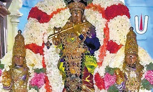 காஞ்சிபுரம்: காஞ்சிபுரம் வரதராஜ பெருமாள் நேற்று, வேணுகோபால் திருக்கோலத்தில் முக்கியவீதிகளில் பவனி வந்து, பக்தர்களுக்கு அருள்பாலித்தார். காஞ்சிபுரம் வரதராஜப்பெருமாள் கோவில் வைகாசி பிரம்மோற்சவத்தில், வேணுகோபால் கோலத்தில், பெருமாள் நேற்று காட்சியளித்தார். முன்னதாக காலை , 5:00 மணிக்கு கோவிலில் இருந்து புறப்பட்ட பெருமாள், செட்டித்தெரு, விளக்கடி கோவில் தெரு, மேட்டுத்தெரு, காமராஜர் சாலை வழியாக, ஏகாம்பரநாதர் கோவில் சன்னதி தெருவிற்கு சென்றார். அங்கு பெருமாளுக்கு மரியாதை செலுத்தப்பட்டது. பின், ராஜவீதிகளில் பவனி வந்து, சின்ன காஞ்சிபுரம் யாதவர் சத்திரத்தில் மண்டகப்படி நடந்தது. காலை, 11:00 மணிக்கு பெருமாள் கோவிலை சென்றடைந்தார். கோவிலின் நான்குகால் மண்டபத்தில் ஊஞ்சல் சேவை நடை பெற்றது. அதைதொடர்ந்து, கண்ணாடி அறைக்கு சென்ற பெருமாளுக்கு திருமஞ்சனம் நடை பெற்றது. மாலை , 6:30 மணிக்கு குதிரை வாகனத்தில் பெருமாள் வீதிவுலா நடைபெற்றது.