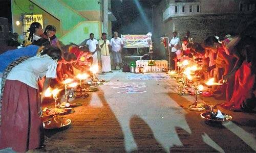 அச்சிறுப்பாக்கம்: மழை வேண்டி பழைய எடையாளம் கிராமத்தில் திருவிளக்கு பூஜை நடை பெற்றது. அச்சிறுப்பாக்கம் ஒன்றியத்திலுள்ள கிராமம் பழைய எடையாளம். இக்கிராமத்தின் சுற்றுப்புறங்களில் கடும் வறட்சி நிலவுகிறது. எனவே , மழை வேண்டி அங்குள்ள மாரியம்மன் கோவிலில் திருவிளக்கு பூஜை நடை பெற்றது. நேற்று முன்தினம் இரவு நடை பெற்ற அப்பூஜையில், ஏராளமான பெண்கள் கலந்து கொண்டு விளக்குகள் ஏற்றி அம்மனை வழிபட்டனர். ஏராளமான பக்தர்களும் கலந்து கொண்டுஅம்மனை மனமுருக தரிசித்தனர்.