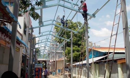திருநள்ளார் சனீஸ்வர பகவான் கோவிலில் பக்தர்கள் வசதிக்காக மேற்கூரை