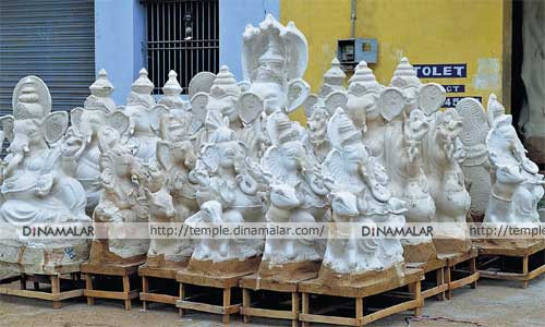 இதையடுத்து, விநாயகர் சிலைகளின் தேவையும் அதிகரித்து வருகிறது. தேவை அதிகரித்ததை அடுத்து, சிலை தயாரிப்பாளர்கள், ஆர்.கே.பேட்டை பகுதியில் தங்கியிருந்து சிலைகளை தயாரிக்க துவங்கி உள்ளனர். ஐந்து ஆண்டுகளுக்கு முன்பு வரை, சிலைகளை லாரிகளில் கொண்டு வந்து விற்பனை செய்வது வழக்கமாக இருந்தது. தற்போது, இதே பகுதியில், தொழிற்கூடங்களை வாடகைக்கு எடுத்து, சிலைகளை தயாரிக்கின்றனர். மூன்று மாதங்களாக இதற்கான பணிகளில் ஈடுபட்டுள்ளனர். பல்வேறு வடிவம் மற்றும் அளவுகளில் சிலைகளை தயாரித்துள்ளனர். தற்போது, கிழங்கு மாவு கொண்டு தயாரிக்கப்பட்ட, வெண்ணிற சிலைகள், வெயிலில் காயவைக்கப்பட்டு வருகின்றன. மழை தீவிரம் அடையும் முன்பாக, சிலைகளை காயவைத்து, கிடங்கில் பாதுகாத்து வருகின்றனர். ஆடி முடிந்து, ஆவணி பிறந்ததும், சிலைகளுக்கு வண்ணம் தீட்டும் பணி மேற்கொள்ளப்படும். பகுதிவாசிகள், வித்தியாசமான விநாயகர் சிலைகளுக்கு, இப்போதே ஆர்டர்களை குவித்து வருகின்றனர்.