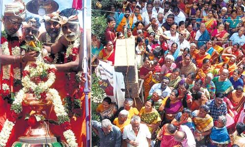 விழா ஏற்பாடுகளை கோயில் திருப்பணிக்குழு தலைவர் ரமேஷ், செயலாளர் சண்முகநாதன், பொருளாளர் பாஸ்கரன், உபதலைவர் அசோக்குமார், உப செயலாளர் காந்தி மற்றும் நிர்வாகஸ்தர்கள், மகளிர் அணி தலைவர் மகேஸ்வரி, செயலாளர் கஸ்துாரி, செயலாளர் கமலவேணி, பொருளாளர் ரேணுகா, நிர்வாகஸ்தர்கள் செய்திருந்தனர். விழாவில் தாய் ஸ்தல தேவாங்கர் ஜாதி பொதுமையின் தலைவர் பரமேஸ்வரன், சவுடாம்பிகா பள்ளி தலைவர் கமலநாதன், தலைமையாசிரியர் காமேஸ்வரன், பாலாஜி மருத்துவமனை டாக்டர் மனோகரன், துரை பல்மருத்துவமனை டாக்டர் சண்முகப்ரீத்தி, ஓம் சிவாத்திரி சிற்ப நிலைய உரிமையாளர் மகேஸ்வரன், மாரி சுவீட்ஸ் உரிமையாளர் ஹரிஹரன், ஜி அக்ரோ டிரேடர்ஸ் உரிமையாளர்கள் ரமேஷ், அமர்நாத், பாலாஜி பவன் ஓட்டல் உரிமையாளர் ஜோதிகிரி, விநாயகா கன்ஸ்ட்ரக்ஷன் உரிமையாளர் பாண்டியராஜ், ஜி.கே.பொன்னையா ஜூவல்லர்ஸ் உரிமையாளர் செந்தில்குமார், ராயல் ரெப்ரிஜிஸ்ரேசன் உரிமையாளர் கணேசன், வைரம் கன்ஸ்ட்ரக்சன் உரிமையாளர் சேகர், ஏ.எம்.கார்மெண்ட் உரிமையாளர் முருகன், ஆலய ஸ்பதி ஐய்யப்பன், ஓவியர் ராசிமணி, மேலத்தெரு தேவாங்கர் ஜாதி பொதுமை நிர்வாகிகள் உட்பட பலர் பங்கேற்றனர். கும்பாபிஷேகத்தையொட்டி அன்னதானம் வழங்கப்பட்டது.