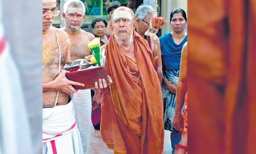 காஞ்சி ஜெயேந்திரர் பழநி முருகன் கோயிலுக்கு தங்க பூணுால் வழங்கி வழிபாடு