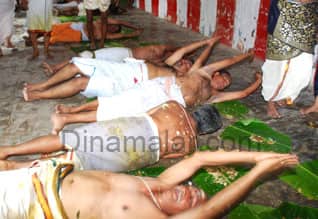 மகாதேவ அஷ்டமி அன்னதான கமிட்டி செயலர் பாலசுப்பிரமணியன் கூறுகையில், ""அன்னம், உயிர், ஆத்மா தொடர்பை உணர்த்துவதற்காக 157 ஆண்டுகளாக அங்கப்பிரதட்சணம் நடக்கிறது. மகாதேவ அஷ்டமி எனும் வைக்காஷ்டமி பூஜை பிரசாதத்தில் அங்கப்பிரதட்சணம் செய்தால், வியாதிகள் தீரும், என்றார்.