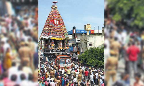 மதுராந்தகம்: மதுராந்தகம் ஏரி காத்த ராமர் கோவில் பிரம்மோற்சவ தேரோட்டம், வழக்கத்தை விட கூடுதல் பிரமாண்டத்தோடு கோலாகலமாக நடைபெற்றது. மதுராந்தகத்தில் ஏரிகாத்த கோதண்டராமர் கோவில் பிரம்மோற்சவம் கடந்த, 30ம் தேதி உற்சாகத்தோடு துவங்கியது. 2ல், கொடியேற்றம், தினமும் பல்வேறு பூஜைகள், சிறப்பு அபிஷேகங்கள் என, களைகட்டிய உற்சவத்தின் முக்கிய நிகழ்வான, 8ம் நாள் திருத்தேர் பவனி, நேற்று நடைபெற்றது. கடந்த ஆண்டுகளை விட, கூடுதல் உற்சாகத்தோடு அதிகமான பக்தர்கள் பங்கேற்றனர். காலை, 9:40 மணிக்கு, நிலையிலிருந்து கிளம்பிய தேர், மதுராந்தகம் நகரின் முக்கிய வீதிகள் வழியாக பவனித்தது; பக்தர்கள் தேரை வடம்பிடித்து இழுத்து வந்தனர்.சில காரணங்களால், கோவிலின் முக்கிய அர்ச்சகர்கள் வெளியேற்றப்பட்ட நிலையில், பிரம்மோற்சவ நிகழ்வின் போது, மேலும் ஒரு அர்ச்சகர் விடுப்பு எடுக்க முயன்றது, நிர்வாகத்தினரிடையே அதிர்ச்சியை ஏற்படுத்தியது. அந்த சூழ்நிலையையும் நிர்வாகத் தரப்பு சமாளித்து, வழக்கத்தை விட சிறப்பாக பிரம்மோற்சவத்தைநடத்தியதாக, ஆன்மிக அன்பர்கள் தெரிவித்தனர். மதுராந்தகம், டி.எஸ்.பி., தலைமையில் ஏராளமான போலீசாரும், காவல் நண்பர்களும், ஊர்க்காவல் படையினரும் பாதுகாப்பு பணியில் ஈடுபட்டிருந்தனர்.