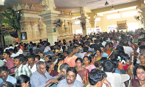 ஆனைமலை : ஆனைமலை மாசாணியம்மன் கோவிலில் நேற்று, ஆடி அமாவாசை சிறப்பு வழிபாடு நடந்தது. பொள்ளாச்சி அடுத்த, ஆனைமலை மாசாணியம்மன் கோவில் பிரசித்தி பெற்றது. கோவிலுக்கு செவ்வாய் மற்றும் வெள்ளிக்கிழமைகளில் அதிகளவிலான பக்தர்கள் வருகை தந்து அம்மனை தரிசிக்கின்றனர். ஆடி அமாவாசை நாளான நேற்று, மதுரை, பழனி, திருப்பூர், கோவை உள்ளிட்ட இடங்களில் இருந்தும், உள்ளூர் பக்தர்களும் காலை முதலே கோவிலுக்கு வந்தனர். அம்மனுக்கு ஆடி அமாவாசையை முன்னிட்டு சிறப்பு அபிஷேகம், ஆராதனை நடத்தது. பல்லாயிரக்கணக்கானோர் அம்மனை தரிசிக்க வந்ததால், மெயின் ரோட்டில் ஒரு கி.மீ., தொலைவுக்கு வாகனங்கள் ஸ்தம்பித்து நின்றன. போக்குவரத்து ஒழுங்குபடுத்தவும், கோவில் வளாகத்தில் பாதுகாப்பு பணியிலும் போலீசார் ஈடுபட்டனர். பக்தர்கள் வசதிக்காக, உடுமலை, கோவை, பொள்ளாச்சி உள்ளிட்ட பகுதிகளில் இருந்து ஆனைமலைக்கு சிறப்பு பஸ்கள் இயக்கப்பட்டன.