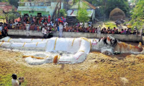 பெண்ணாடம்: பெண்ணாடம், திருமலை அகரம் திரவுபதி அம்மன் கோவிலில் நடந்த அரவான் களப்பலி நிகழ்ச்சியில் ஏராளமானோர் தரிசனம் செய்தனர். கடந்த 10ம் தேதி காப்பு கட்டுதலுடன் துவங்கியது. தொடர்ந்து, தினமும் இரவு அம்மன் வீதியுலா நிகழ்ச்சி நடந்தது. 26ம் தேதியன்று திருக்கல்யாண உற்சவம் நடந்தது. அதையடுத்து, 28ம் தேதி காலை அரவான் களபலி நடந்தது. இதில் ஏராளமானோர் சுவாமி தரிசனம் செய்தனர். மாலை 5:00 மணியளவில் தீ மிதி உற்சவம் நடந்தது. 29ம் தேதி மஞ்சள் நீர் உற்சவம் நடக்கிறது.
