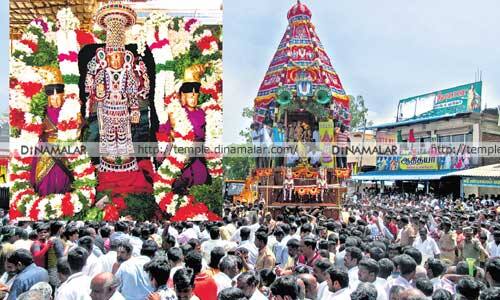 தேரோட்டம்:திருவிழாவின் முக்கிய நிகழ்ச்சியாக 9வது நாள் மாலையில் இங்கு தேரோட்டம் நடப்பது வழக்கம். ஆனால் நேற்று சந்திர கிரகணம் ஏற்பட்டதால் மாலை நேரத்திற்கு பதிலாக காலையில் தேரோட்டம் நடத்தப்பட்டது. முன்னதாக மதுரை அழகர்மலை தீர்த்தத்தால் சுவாமிகளுக்கு அபிஷேகம் நடந்தது. சன்னதியில் இருந்து ஊர் பிரமுகர்கள் அழைத்து வர முத்தங்கி அலங்காரத்தில் ஸ்ரீதேவி, பூமாதேவியுடன் சவுந்தரராஜ பெருமாள் தேரில் எழுந்தருளினார். காலை 11:00 மணிக்கு தேரோட்டம் துவங்கியது. மதியம் 12:50 மணிக்கு தேர் நிலைக்கு வந்தது. பின்னர் சுவாமி தேர்க்கால் பார்க்கும் நிகழ்ச்சி முடிந்து, சந்திர கிரகணம் காரணமாக நேற்று மதியமே கோயில் நடை சாத்தப்பட்டது.