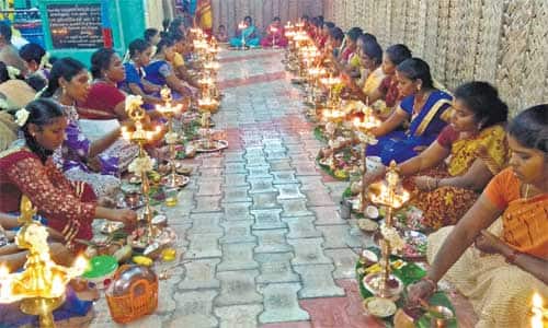 முத்துமாரியம்மன் கோயிலில் மழை வேண்டி 108 திருவிளக்கு பூஜை