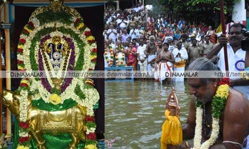 பின்னர் காலை 9:30 மணிக்கு தங்க மூஷிக வாகனத்தில் உற்சவர் கோயிலை வலம் வந்து, குளத்தின் தெற்கு கரையில் எழுந்தருளினார். தலைமைக்குருக்கள் பிச்சை சிவாச்சாரியார்,தலைமையில் சிவாச்சாரியர்கள் வேதமந்திரம் முழங்க அங்குசத் தேவருக்கு படித் துறையில் அபிேஷக, ஆராதனை நடந்தன. பின்னர் சோமசுந்தர குருக்கள் அங்குசத்தேவருடன் குளத்தில் காலை 10:10 மணி அளவில் மூன்று முறை மூழ்கி தீர்த்தவாரி நடத்தினார். உற்சவருக்கு தீபாராதனை நடந்தது. தொடர்ந்து தங்கக் கவசத்தில் மூலவரை பக்தர்கள் தரிசித்தனர். மதியம் 2:00 மணிக்கு மூலவருக்கு ’மெகா’ கொழுக்கட்டையான முக்குறுணி மோதகம் படையலிடப்பட்டதை பக்தர்கள் தரிசித்தனர். இரவில் சுவாமிகள் வாகனங்களில் திருவீதி வலம் வந்தனர். பக்தர்கள் நீண்ட வரிசைகளில் காத்திருந்து விநாயகரை தரிசித்தனர். ஏற்பாடுகளை பரம்பரை அறங்காவலர்கள் நற்சாந்துபட்டி பெரியகருப்பன், காரைக்குடி நாராயணன் செய்தனர்.