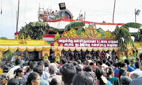 திருக்கழுக்குன்றம் : புதிதாக கட்டப்பட்ட வள்ளி, தெய்வானை சமேத சுப்ரமணியர் கோவிலில், நேற்று கும்பாபிஷேகம் கோலாகலமாக நடந்தது. திருக்கழுக்குன்றம் பேரூராட்சி தேசுமுகிப்பேட்டை, திருப்பூர் குமரன் நகரில், 15 லட்சம் ரூபாய் மதிப்பில், வள்ளி, தெய்வானை சமேத சுப்ரமணியர் கோவில் புதிதாக கட்டப்பட்டு உள்ளது. யாகசாலை பூஜை முடிக்கப்பட்டு, கலசங்கள் ஊர்வலமாக கொண்டு வரப்பட்டு, நேற்று காலை, 9:00 மணிக்கு, கும்பாபிஷேகம் நடத்தப்பட்டது. ஏராளமான பக்தர்கள் குவிந்தனர்.முன்னதாக, 25ம் தேதி கணபதி ஹோமம், நவகிரக ஹோமம், யாகசாலை பூஜைகள் நடந்தன. தினமும் மாலை, பரத நாட்டியம் மற்றும் சிறப்பு பட்டிமன்றங்களும் நடந்தன.