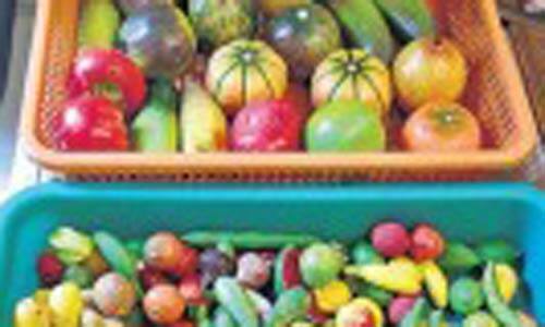 ஈரோடு: ஈரோடு, பூம்புகார் விற்பனை நிலையத்தில், கொலுவை அலங்கரிக்கும் வகையில், 54 வகையான பழங்கள் மற்றும் காய்கறி பொம்மைகள் தத்ரூபமாக விற்பனைக்கு வந்துள்ளன.
