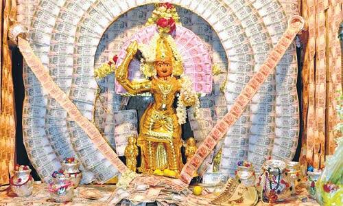சிவகாசி: சிவகாசி பேச்சியம்மன் கோயிலில் ஆவணி திருவிழாவை முன்னிட்டு ரூபாய் நோட்டு அலங்காரத்தில் அம்மன்.