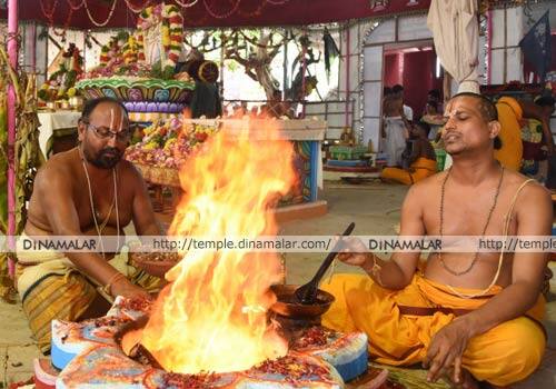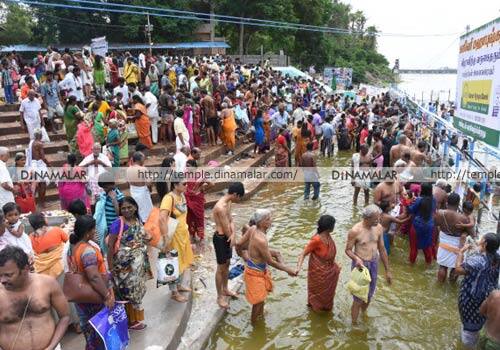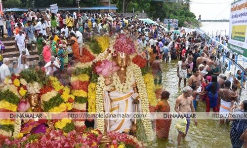 ஸ்ரீரங்கம் அம்மா மண்டபம் சாலையில் மகா புஷ்கரம் விழா கடந்த 12ம் தேதி தொடங்கி வரும் 24ம் தேதி வரை நடைபெறுகிறது. இந்த விழாவின்போது காவிரியில் புனித நீராடினால் மூன்றரை கோடி தீர்த்தத்தில் நீராடிய பலன்கள் கிடைக்கும் என்பது ஐதீகம். விழாவின் ஐந்தாம் நாள், ஸ்ரீரங்கம் அம்மா மண்டபம் யாகசாலையில் தன்வந்த்ரி இஷ்டி ஹோமம் நடந்தது. யாகசாலையில் ஆதிநாயக பெருமாள் தாயருடன் எழுந்தருளினார். தமிழகம் மட்டுமன்றி ஆந்திரா, கர்நாடகா உள்ளிட்ட பிறமாநிலங்களில் இருந்தும் ஏராளமான பக்தர்கள் காவிரியாற்றில் புனித நீராடி பெருமாளை தரிசனம் செய்தனர்.