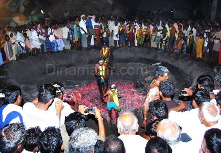 திருப்புவனம்: மத நல்லிணக்கத்தின் வெளிப்பாடாக மொகரம் பண்டிகையில் இந்துக்கள் தீமிதிக்கும் திருவிழா திருப்புவனம் அருகே முதுவன்திடலில் நடந்தது. சிவகங்கை மாவட்டம் திருப்புவனத்திலிருந்து 6 கி.மீ.,தூரமுள்ள முதுவன்திடலில் 500 இந்து குடும்பங்கள் உள்ளன. ஆரம்ப காலத்தில் இங்கு முஸ்லிம்கள் அதிகளவில் வசித்தனர். நாளடைவில் நகர் பகுதிக்கு அவர்கள் சென்று விட்டனர். முஸ்லிம்கள் வழிபட்ட பாத்திமா நாச்சியார் பள்ளிவாசலை, இந்துக்கள் காவல்தெய்வமாய்,குலதெய்வமாய் வழிபடுகின்றனர். மொகரம் மாதத்தில் அமாவாசை முடிந்து, பிறை தெரிந்த மூன்றாம் நாளில் தீமிதிப்பதற்கு பள்ளம் தோண்டுதல், ஐந்தாம் நாள் காப்புக்கட்டுதலுடன் விழா துவங்குகிறது. ஏழாம்நாள் அசேன், உசேன் உருவத்துடன் சப்பரம் உலா வருதல் நடக்கிறது. ஒன்பதாம் நாள்முடிந்து அதிகாலை 4 மணிக்கு காப்புக்கட்டியவர்கள் தீமிதிக்கின்றனர். தீமிதிப்பதற்கு முன் சிலம்பாட்டம் ஆடி ஊரை வலம் வருகின்றனர். அதிகாலை 3.45 மணிக்கு, 3 சிறுவர்கள் உட்பட 23 ஆண்கள் தீமிதித்து நேர்த்தி கடன் செலுத்தினர். பெண்கள் தம் பங்கிற்கு திருமண தடை நீங்கிடவும், விவசாயம் செழித்திடவும், நோய் நொடியின்றி மக்களை காத்திடவும் வேண்டுகின்றனர். அதிகாலையில் குளித்துவிட்டு, ஈரத்துணியால் உடல் முழுவதும் போர்த்திக்கொண்டு உட்காருகின்றனர். தீக்கங்குகளை மண்வெட்டியால் எடுத்து பெண்கள் தலைமீது கொட்டுகின்றனர். அருகேயுள்ளவர்கள் பாத்திமா, பாத்திமா என கோஷம் எழுப்புகின்றனர். இதனை பூ மொழுகுதல் என்கின்றனர். எந்தக்காரியங்கள் துவங்கினாலும், பாத்திமா நாச்சியாருக்கு முதலில் காணிக்கை செலுத்துவதும், பயிர் அறுவடையின் போது படைப்பதும் வழக்கமாக கொண்டுள்ளனர். இங்குள்ள மகளிர் குழு, கபடிக்குழுவுக்கு பாத்திமா நாச்சியார் பெயர் சூட்டுவதால் வெற்றி வாகை சூடுவதாகவும் நம்புகின்றனர். மத நல்லிணக்கத்திற்கு எடுத்துக்காட்டாக திகழும் தீமிதி திருவிழாவைக்காண வெளிநாட்டினரும் வருகின்றனர்.