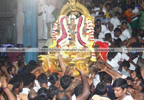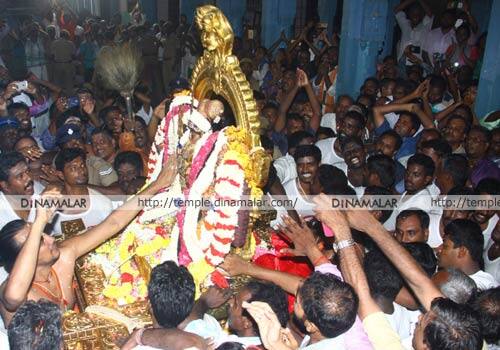 அன்னையிடம் சக்தி வேல் பெற்று, தன் சன்னிதியில் அமர்ந்த உற்சவரான முருகப்பெருமானுக்கு, மனிதர்களுக்கு வியர்ப்பது போன்று, திருமேனியெங்கும் வியர்வை பொழியும் மகிமை நடந்தது. முருகப்பெருமானின் ஆக்ரோஷ வெப்பத்தை தாங்கிக் கொள்ள இயலாமல், சன்னிதி சுவர்களிலும் வியர்வை துளிகள் அரும்பியிருந்தது பக்தர்களை மெய்சிலிர்க்க வைத்தது. ஆயிரக்கணக்கான பக்தர்கள் பங்கேற்று சுவாமி தரிசனம் செய்தனர்.