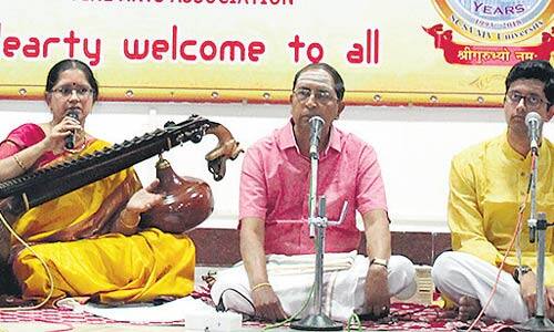 காஞ்சிபுரம் : காஞ்சிபுரம் சங்கரா பல்கலைக்கழகத்தில், தேசிய அளவிலான, முத்துஸ்வாமி தீட் சிதர் இசை நிகழ்ச்சி நடந்தது. காஞ்சிபுரம், ஏனாத்துார் ஸ்ரீசந்திரசேகரேந்திர சரஸ்வதி விஸ்வமஹாவித்யாலயா பல்கலைக்கழகத்தில், வெள்ளி விழா கொண்டாடப்படுகிறது. இதன் பகுதியாக, சங்கீத மும்மூர்த்திகளில் ஒருவரான, முத்துஸ்வாமி தீட் சிதரின் கிருதிகளை இளைய தலை முறையினருக்கு சேர்க்கும் வகையில், தேசிய அளவிலான மூன்று நாள் இசை நிகழ்ச்சி நடந்தது. பல்கலைக்கழகத்தின் வடமொழி- இந்தியப் பண்பாட்டுத் துறை மற்றும் கவின்கலைச் சங்கம் இணைந்து நடத்திய இவ்விழாவிற்கு, பல்கலைக்கழக துணைவேந்தர் பேராசிரியர், வி.எஸ்.விஷ்ணுபோத்தி தலைமை வகித்தார். இதில், நாட்டின் பல இடங்களிலிருந்தும் இசைக் கலைஞர்கள் பங்கேற்று, முத்துஸ்வாமி தீட் சிதரின் பெருமைகளை கூறி, அவரின் கிருதிகளைப் பாடினர்.
