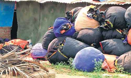 அந்த ஆற்றில் குவிந்துள்ள பழைய துணிகளை அப்புறப்படுத்த கேரள உயர்நீதிமன்றம் உத் தரவிட்டுள்ளது. இதனால் திருவாங்கூர் தேவசம் போர்டு துணிகளை அகற்ற டெண்டர் விட் டது. இதனை பெரியகுளத்தைச் சேர்ந்தசெல்வக்குமார், 34, என்பவர் டெண்டர் எடுத்துள்ளார். ஆற்றில் ஈரமாக கிடந்த 12 டன் துணிகளை,மூடையாக கட்டி லாரியில் நேற்றுமுன்தினம் பெரியகுளம் அருகே சருத்துப்பட்டிவசந்தம்நகரில், காலி இடத்தை வாடகைக்கு எடுத்து இறக்கியுள்ளார். துணிகளை காயவைத்து,பழையவற்றை கழித்து மற்றவற்றை சலவை செய்து,பேக்கிங் செய்து விற்றுவிட திட்டமிட்டிருந்தார். ஈரத்துணிகளை நேற்று அந்தப் பகுதியில் காயவைத்துள்ளார்.