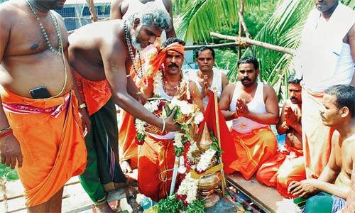 விழுப்புரம் : நல்லரசன்பேட்டை கிராமத்தில் உள்ள 5 கோவில்களுக்கு கும்பாபிஷேகம் நடந்தது. விழுப்புரம் அடுத்த நல்லரசன்பேட்டை கிராமத்தில் உள்ள செல்வவிநாயகர், சுந்தரவிநாயகர், கங்கை அம்மன், திரவுபதி அம்மன், காமன் மற்றும் பரிவார கோவில்களில், நேற்று காலை மகா கும்பாபிேஷகம் நடந்தது. அதனையொட்டி நேற்று காலை கோ-பூஜை, யாத்ராதானம், மூன்றாம் கால யாக பூஜை, பூர்ணாஹூதியை தொடர்ந்து காலை 9:30 மணிக்கு கலசம் புறப்பாடாகி, ஒவ்வொரு கோபுர கலசத்திலும் புனித நீர் ஊற்றி கும்பாபிேஷகம் நடந்தது. இதில் ஏராளமான பக்தர்கள் பங்கேற்றனர். கும்பாபிஷேக ஏற்பாடுகளை கிராம மக்கள் செய்திருந்தனர்.